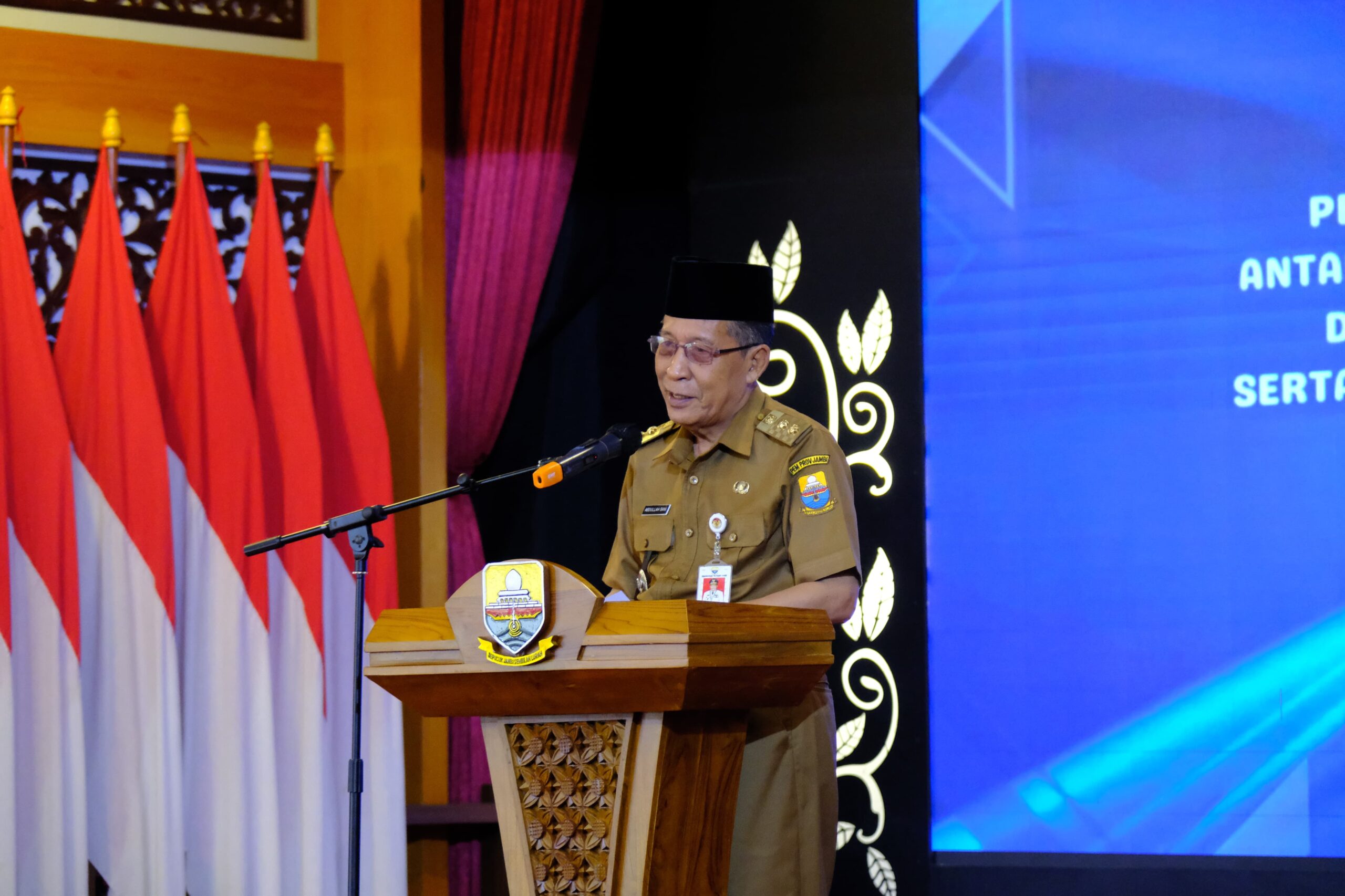 DJAMBI.ID | Jambi – Wakil Gubernur (Wagub) Jambi Drs. H. Abdullah Sani, M.Pd.I mengemukakan, Pemerintah Provinsi (Pemprov) Jambi sangat mendukung sinergi antara Kanwil Kementerian Hukum Jambi dengan Perguruan Tinggi dan masyarakat untuk melindungi kekayaan intelektualnya sehingga mampu berdaya saing, yang pada akhirnya dapat meningkatkan pertumbuhan perekonomian masyarakat dan daerah, dapat berkontribusi terhadap peningkatan kemajuan daerah. Dukungan tersebut disampaikan Wagub saat Penandatanganan Nota Kesepahaman Memorandum of Understanding (MoU) antara Kantor Wilayah Kementerian Hukum Jambi dengan Perguruan Tinggi Di Provinsi Jambi serta Pembukaan Diseminasi Kekayaan Intelektual Bagi Akademisi dan Pelaku UKM/UMKM, bertempat di Auditorium Rumah Dinas Gubernur Jambi, Senin (21/04/2025) pagi.